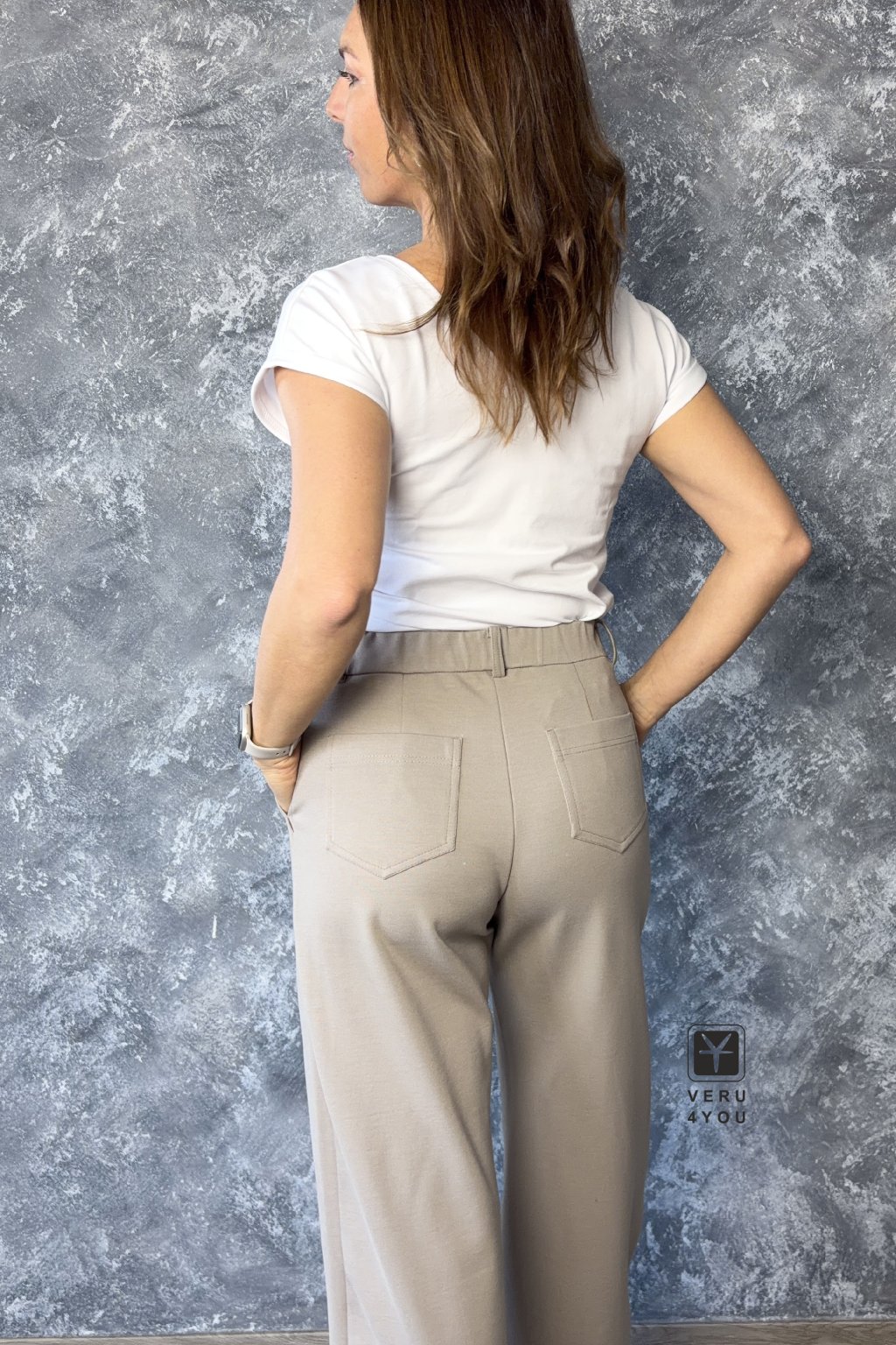 Kalhoty mají pružný pas po celém obvodu, který se přizpůsobí postavě a nikde netlačí, ani při delším sezení. Zároveň je střih navržený tak, aby nevytvářel typické řasení na zadku, které působí sportovně. Díky tomu si kalhoty zachovávají čistý a upravený vzhled. Díky poutkům na pásek je můžeš snadno posunout do elegantnější roviny.