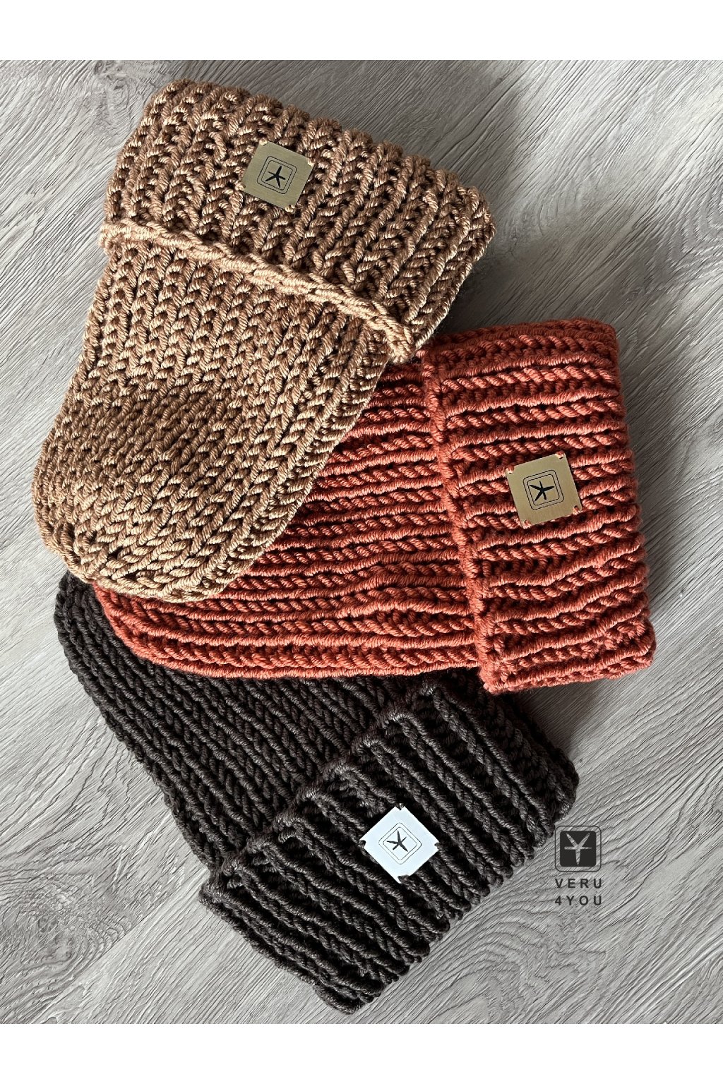 Nežmolkující příze, dlouhá maxi čepice s přepadem, ozdobená stříbrnou nebo zlatou cedulkou s naším logem (pište do poznámek k objednávce o jakou barvu cedulky máte zájem)